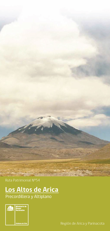 La Ruta Patrimonial “Los Altos de Arica” representa una oportunidad y un desafío para los amantes de la naturaleza y todos aquellos viajeros que deseen conocer y comprender las magníficos paisajes, ecosistemas y el legado cultural de la zona andina de la Región de Arica y Parinacota. A través de su recorrido podrá apreciar diferentes ambientes ecológicos de pampa, desierto, precordillera y altiplano junto con manifestaciones y vestigios humanos del pasado y del presente, que se integran bajo la forma de paisajes culturales y que testimonian los procesos adaptativos del hombre, su historia y sus emprendimientos productivos y económicos contemporáneos. El legado o patrimonio indígena Aymara, el de los Incas y finalmente el español, no estarán ausentes en su viaje, con innumerables ejemplos de las formas de ocupación, organización social y desarrollos arquitectónicos y agroecológicos de sus primeros habitantes y de las actuales generaciones que habitan la excepcional geografía andina de la región.